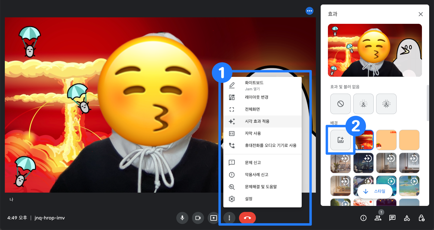 - 원하는 배경을 선택하면 google meet 배경 화면이 설정됩니다.