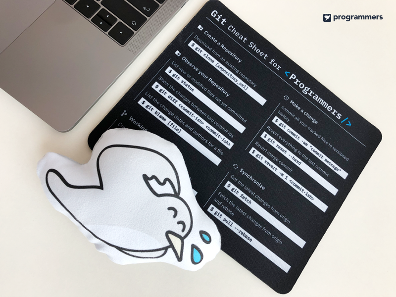 프로그래머스 개발자가 추천하는 Git cheat sheet 마우스 패드입니다. Git을 활용하여 버전 관리를 하고 있는 개발자를 위한 아이템이죠. 개발하다가 실수했을 때나 너무 당황해서 아는 것도 기억나지 않을 때 특히 유용합니다. 머쓱이 손목 쿠션은 귀여움을 맡고 있습니다.
