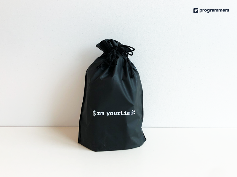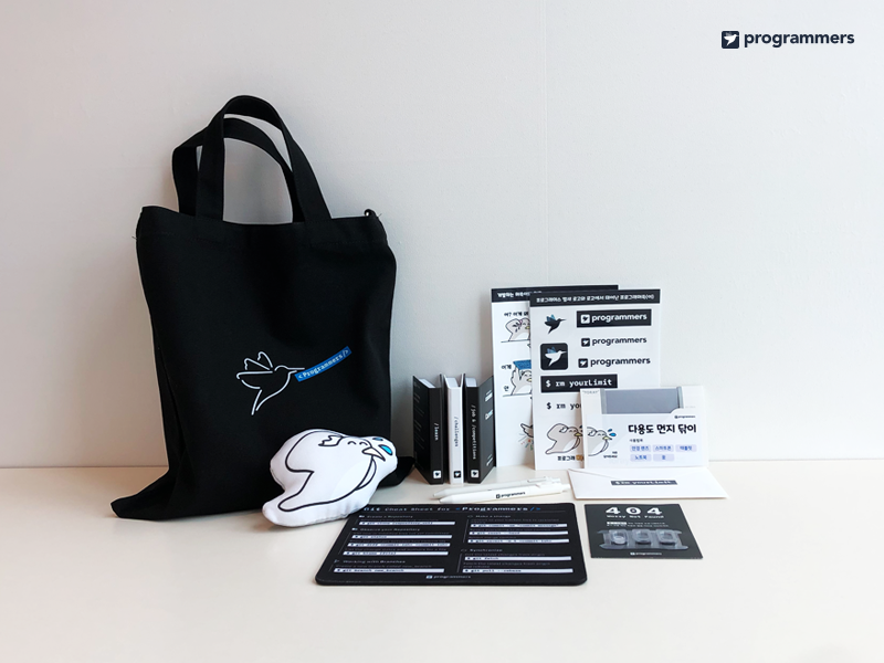 프로그래머스의 브랜드 키트는 "rm yourLimit"이라는 슬로건이 새겨진 더스트백에 담았습니다. rm은 리눅스 명령어로 remove의 약어예요. Remove Your Limit은 개발자라는 인생 여정을 살아가면서, 저마다의 가능성을 마음껏 펼치기 바라는 프로그래머스의 바람입니다. 우리 모두 무한한 가능성이 있으니까요! 꿈을 실현하는 과정에서 마주치는 어려움은 프로그래머스가 극복할 수 있도록 돕겠습니다.