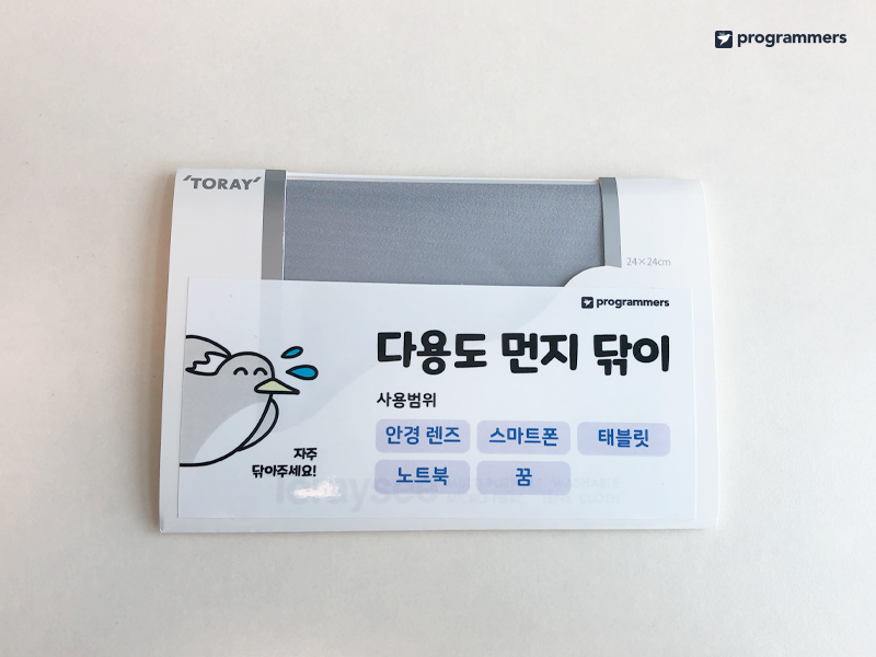 먼지가 정말 잘 닦인다고 소문난 안경닦이 겸 먼지 닦이입니다. 안경을 써도, 안경을 안 써도 모두에게 유용해요! 로고도 넣을 수 없지만😢 이건 정말 선물하고 싶었어요.