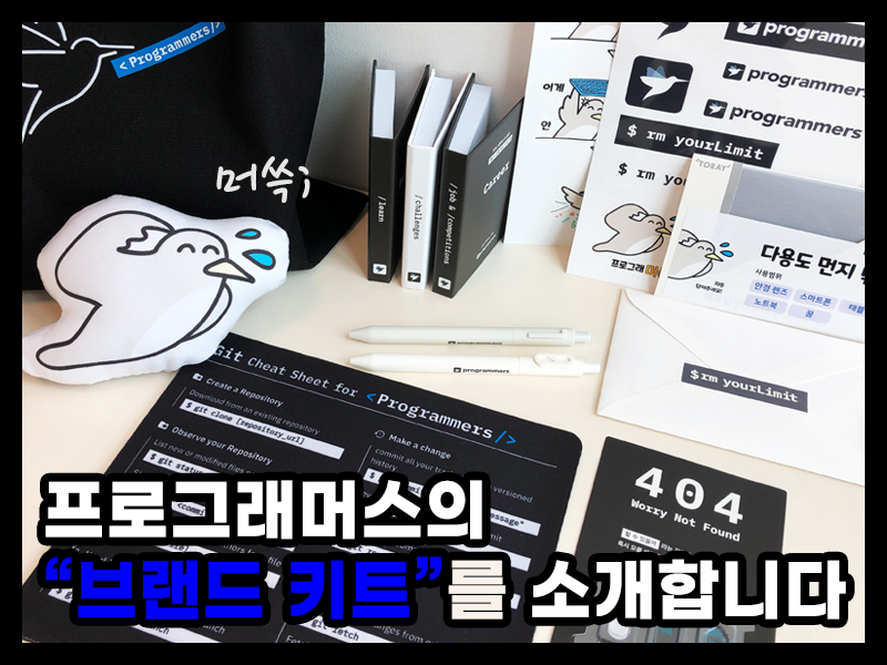 안녕하세요. 프로그래머스 마케터 Sofie입니다. 프로그래머스의 첫 번째 브랜드 키트(Brand Kit) 탄생을 축하하며, 머쓱하지만 우리 애(?) 자랑을 적어봅니다. 세상에 딱 200개만 있는 프로그래머스의 웰컴 키트(Welcome Kit)이자 홍보용 선물입니다.
