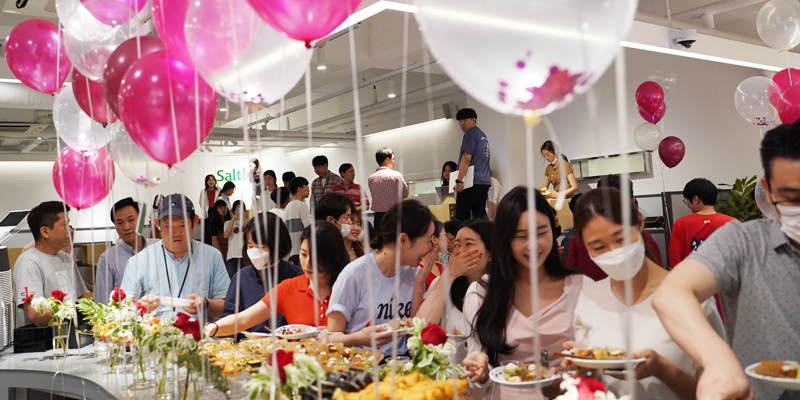 2020년 7월 30일. 창립 20주년이 된 솔트룩스 기념 파티 모습. 장소는 솔트룩스 카페테리아.
