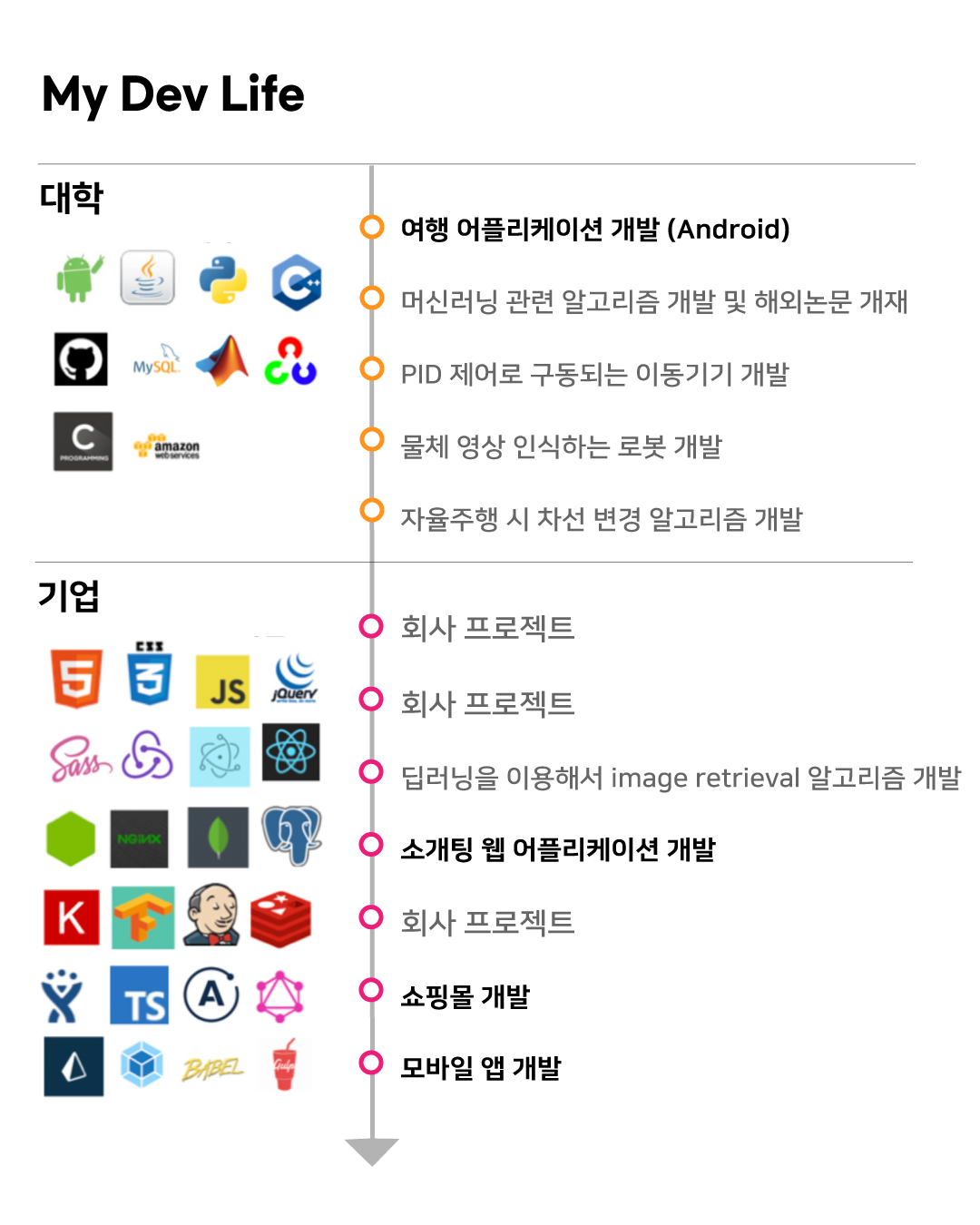 학생 때부터 전 직장에 있을 때까지의 프로젝트 연대기 다른 개발자들과 나를 차별화하려면 포트폴리오를 만들 때 어떤 것들을 신경 쓰면 좋을까요?