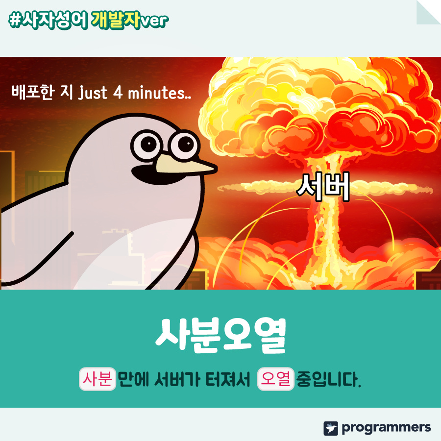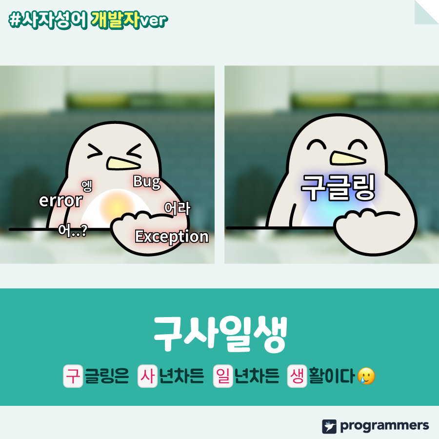 개발자ver 사자성어 콘텐츠는 여기까지! 다음에 더 재미있는 콘텐츠로 돌아오겠습니다.