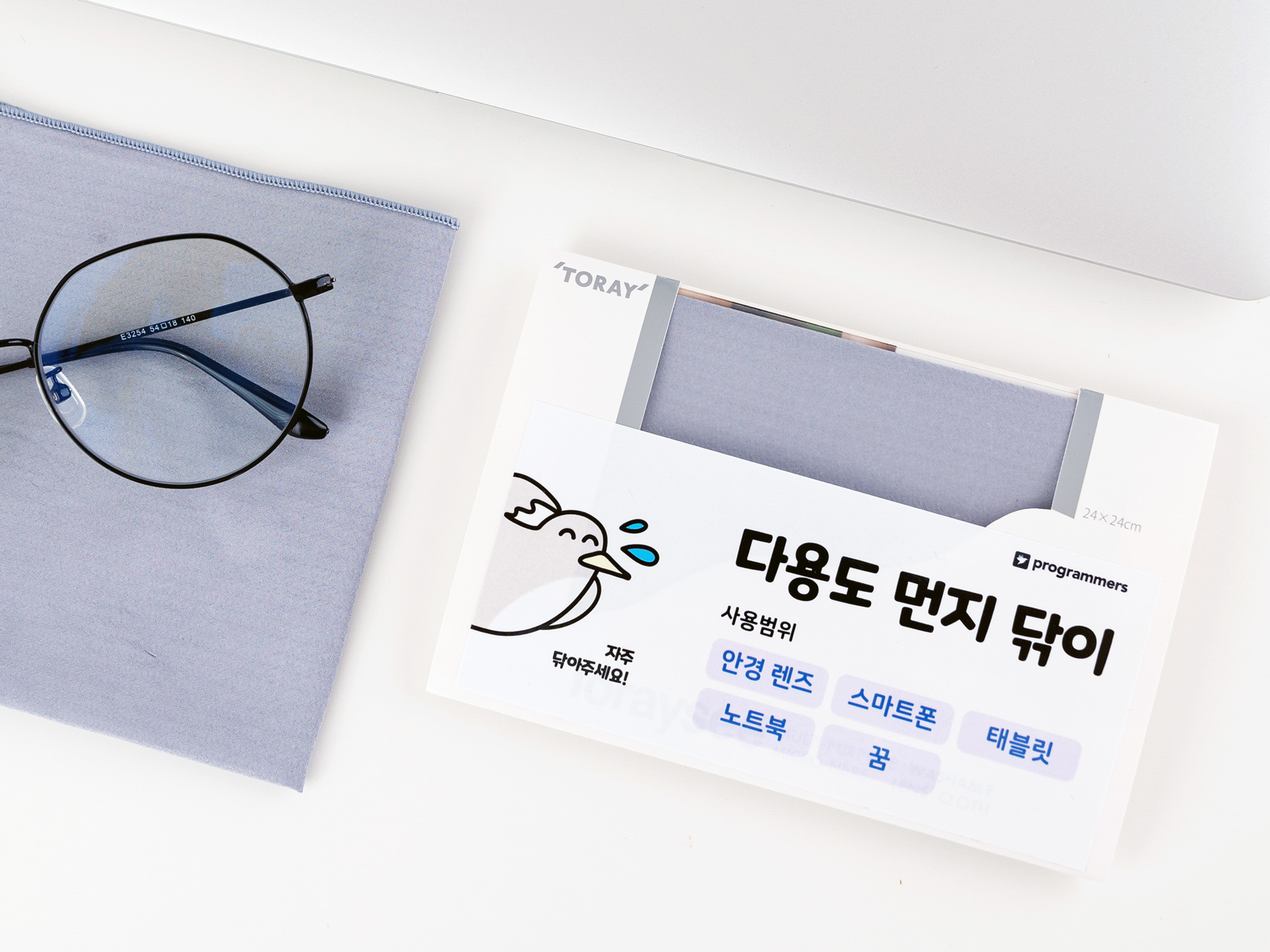 개발자의 먼지를 모조리 없애줄 머쓱이의 여섯 번째 선물은 '고민까지 닦아주는 고급 먼지닦이'입니다. 안경 렌즈부터 모니터, 핸드폰까지 광범위하게 사용할 수 있는 고급 먼지닦이예요. 특히 모니터에 남은 지문을 닦을 때 유용하게 사용할 수 있습니다. 고급 먼지닦이로 근심과 걱정까지 모조리 닦아내 보세요!